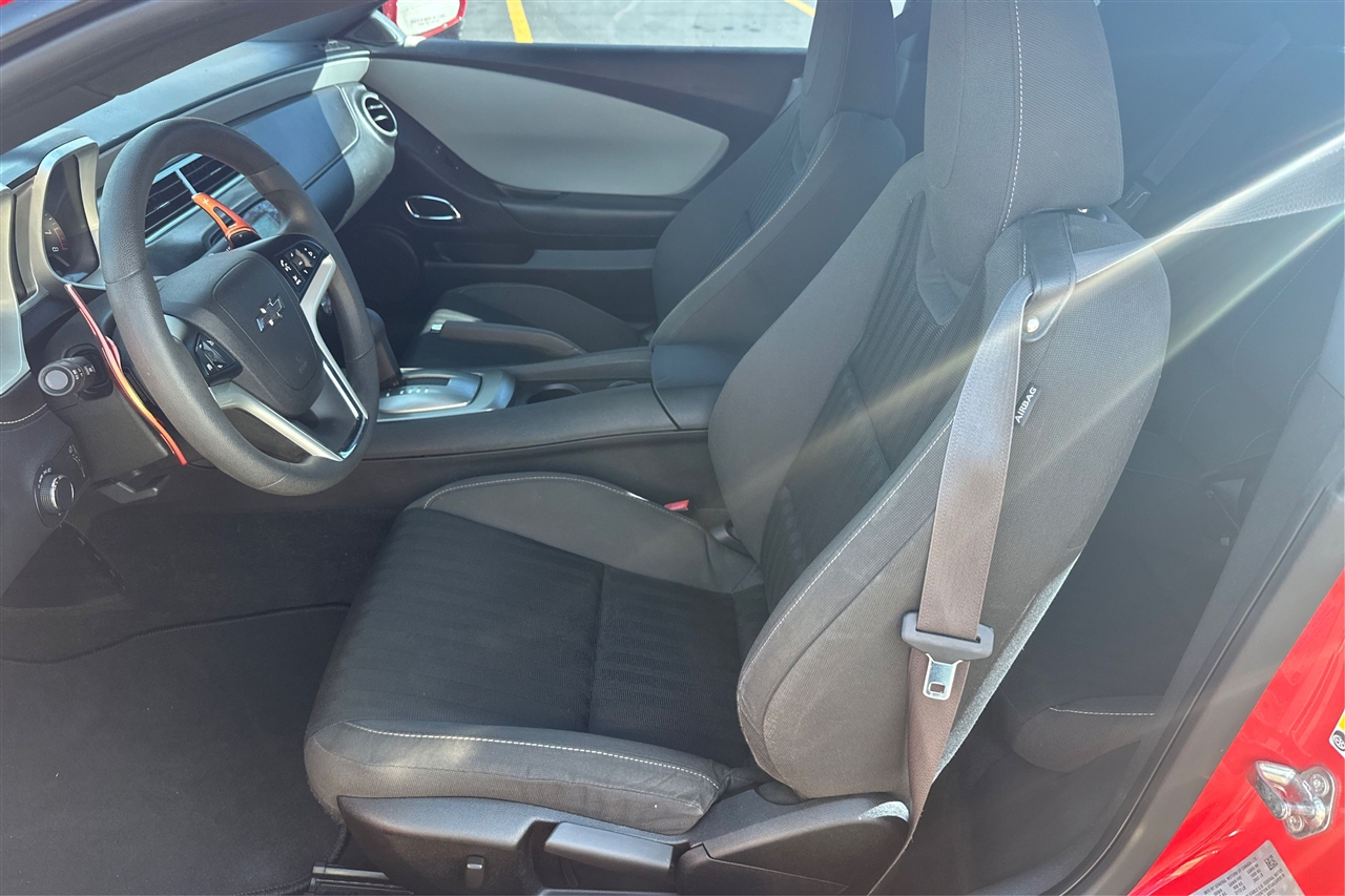 Cruise down the highway with confidence, thanks to the 4-wheel antilock disc brakes and sport suspension that provide a smooth and responsive ride. With power steering, a theft-deterrent system, and cruise control, every drive in this Camaro is a breeze.