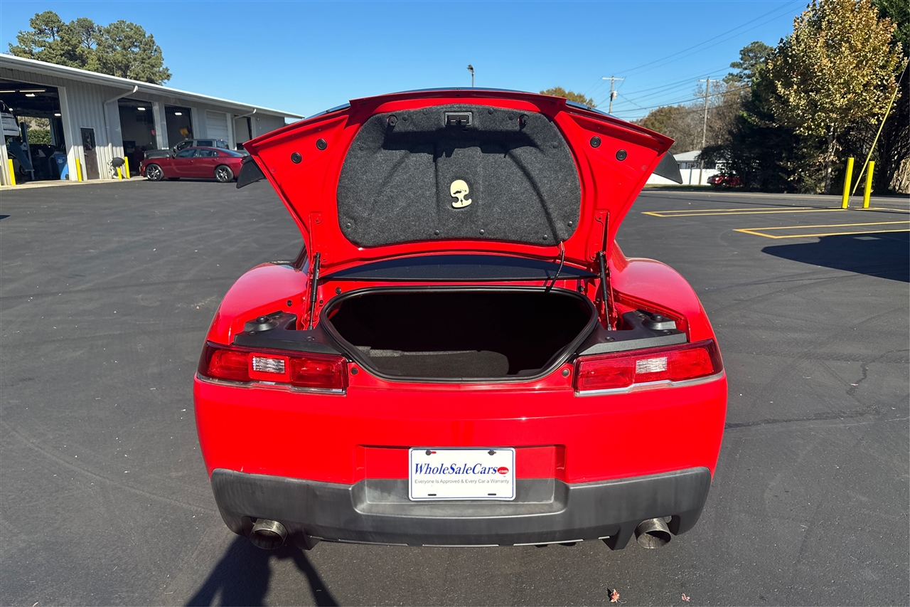 Rev your engines in this sizzling red 2015 Chevrolet Camaro! Boasting a powerful 3.6L SIDI DOHC V6 VVT engine, this beast is ready to hit the open road with 323 horsepower at your command. Glide through the streets in style with rear-wheel drive and a smooth 2.92 axle ratio, providing a thrilling driving experience every time.The sleek exterior features a striking black roof ditch molding, body-color lower rocker moldings, and dual-outlet stainless-steel exhaust with bright tips that will turn heads as you pass by. With halogen composite headlamps and body-color door handles, every detail of this Camaro exudes confidence and class.